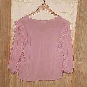 Caralynmirand The Drop pink pulover blouse medium. Gently used condition. Measurements are: 19” sleeve, 24” from shoulder to hem, and 19 ½" from armpit to armpit.