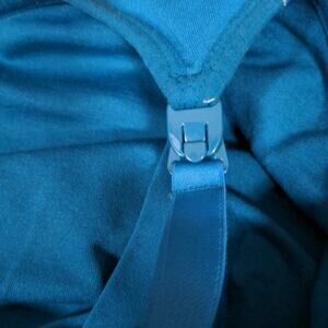 Very good pre-owned condition. Clean with no rips, stains or tears. Color is more green than blue. Removeable straps.
