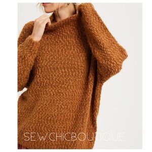 Caramel Fuzzy & Soft Mock Neck Sweater