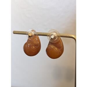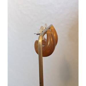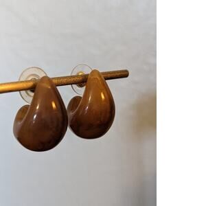 Caramel Resin Marbled Chunky C-Shape Huggie Post Earrings. Pre-owned, these earrings are understated sophistication and are in great condition.