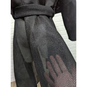 Caramel by Rosa & Rose Women's Black Solid Long-Sleeve Tie-Belt Net Trim Jacket