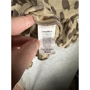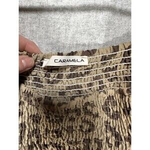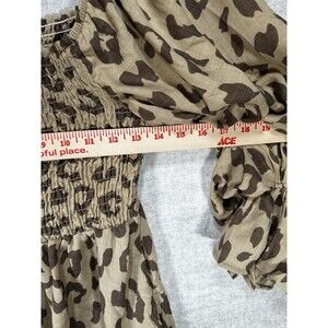 Caramela Smocked Leopard Long Sleeve Top Off Shoulder Women’s Medium Puff Sleeve