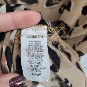 Caramela Womens large brown black mocha leopard print blouse Ruffle sleeve v neck casual tunic dress boutique