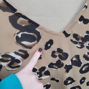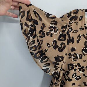 Caramela Womens large brown leopard print v neck blouse Ruffle sleeve dress