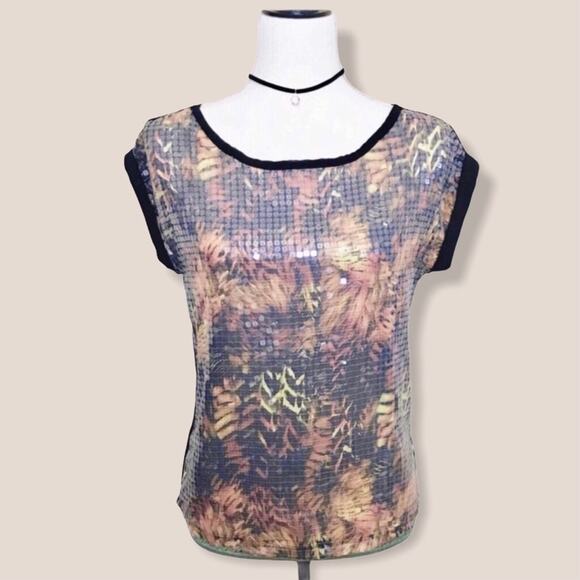 Caramelo Sequined Blouse Black & Gold Animal Print Short Sleeve Top