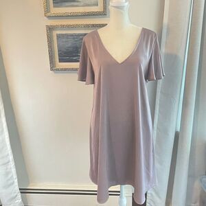 Caramels flowy dress with flutter sleeves, deep V neck Like new!