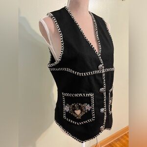 Caravan Womens Embroidered Black 100 % Wool Vest Size M New