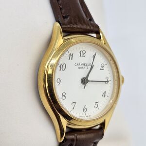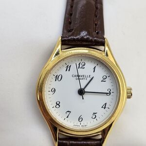 Caravelle Bulova Women Watch 26MM White Dial New Brown Leather Band New Battery