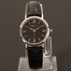 Caravelle Ladies Quartz Dress Watch By Bulova Black Textured Dial, Strap 28mm