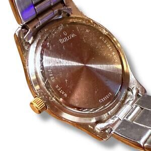 The watch is in good working condition and ready to wear. There is scratching on the bracelet and case back. Some of the gold tone on the bracelet is scratched off.