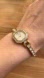Description: octagonal silver tone dial, gold tone watch case, crystals on the bezel