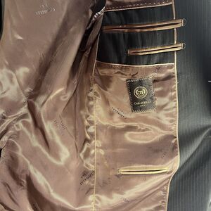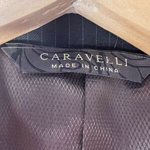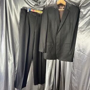 Caravelli 2-Pc Men's Suit Black Pin Superior 150s Blazer 44R Pants 38x44 FLAWS