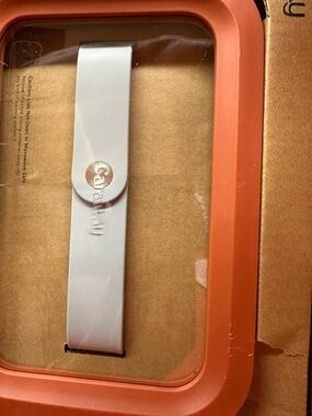 Rectangular food storage container with a terracotta silicone rim. Simple, modern look. Great for fridge or meal prep. NEW but scratch on right corner (see pic)