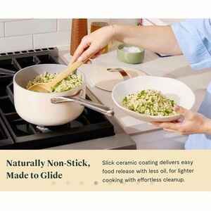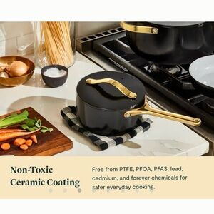 Simmer, boil, and melt with Caraway’s 3 qt Ceramic-Coated Sauce Pan. Designed for even heating without sticking, this kitchen essential is perfect for everything from soups and sauces to rice and pasta. Thoughtfully crafted without PTFE, PFOA, and PFAS, our proprietary non-stick ceramic offers effortless cooking, easy cleanup, and peace of mind at every meal. NEVER USED.