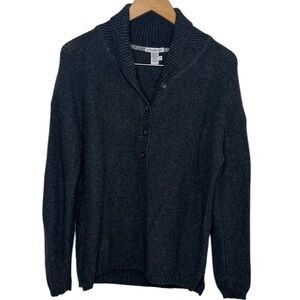 Carbon 2 Cobalt Grey Merino Wool BCI Cotton Button Sweater Men Size Medium