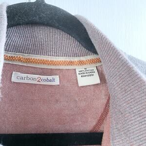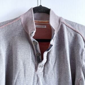 Carbon 2 Cobalt Henley Sweater Mens Medium Kinetic Raw Edge Brown Cotton