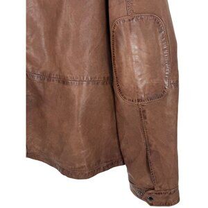 The Carbon 2 Cobalt men's lamb leather jacket, crafted in a distressed, rustic walnut brown, offers a professional style with practical features. It includes multiple pockets & adjustable closures, providing both functionality & comfort.