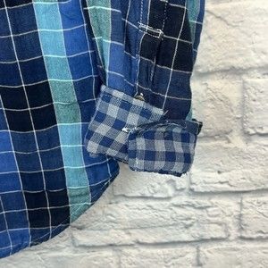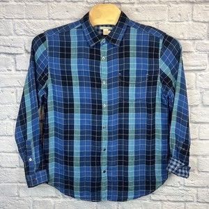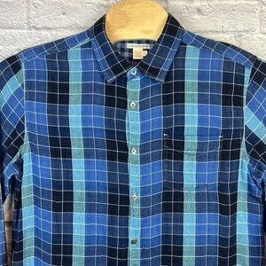 Carbon 2 Cobalt Men Button Up Blue Plaid Check Soft Flannel Pocket Size Large.