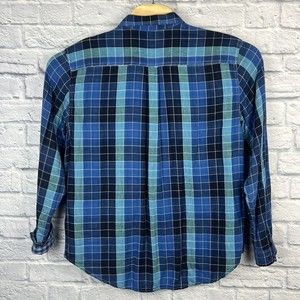 Carbon 2 Cobalt Men Button Up Blue Plaid Check Soft Flannel Pocket Size Large