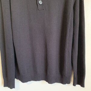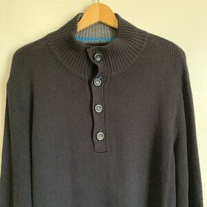 Carbon 2 Cobalt Men's 1/4 Button Sweater XL Black Mixed Waffle Knit Preppy