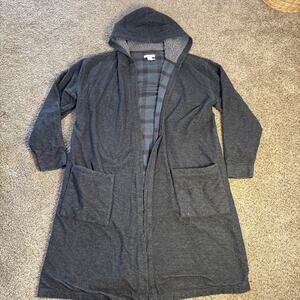 Carbon 2 Cobalt Mens Gray Plaid Sherpa Hood Long Sleeve Cotton Robe Pockets Warm