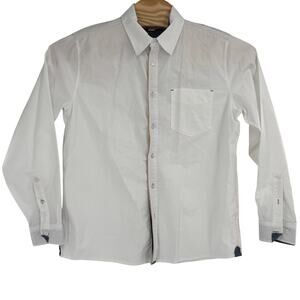 This is a pre owned Carbon 2 Cobalt Mens Medium Solid White Long Sleeve Button Up Cotton Shirt. This item is in great condition with minimal or no signs of use.