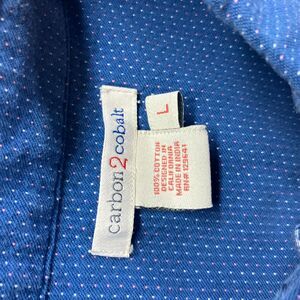 Carbon 2 Cobalt Shirt Mens Large Blue Polka Dot Long Sleeve Pocket Button Down