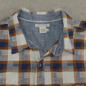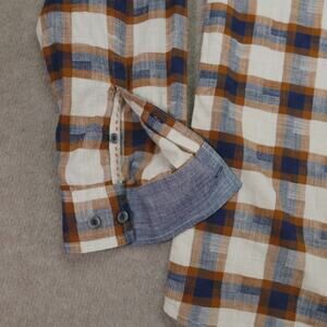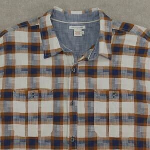 Carbon 2 Cobalt Shirt Mens Large Button Up Brown Blue Plaid Long Sleeve