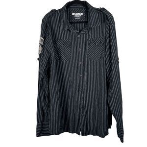 Carbon Black White Pin Stripe Long Sleeve Button Front Shirt Men's Size XXL