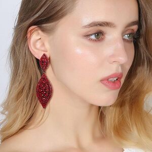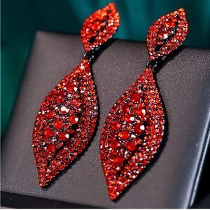 Carbon Black with Ruby Red Crystal Double Leaf Chandelier Post Back Earrings