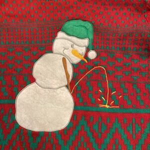 Carbon Brand Size Large Peeing Snowman Ugly Christmas Sweater Funny