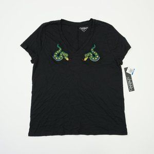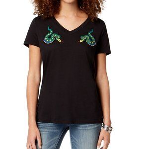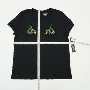 ITEM: Carbon Copy Womens Juniors Top V Neck Embroidered Snakes Tee T Shirt