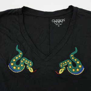 Carbon Copy V Neck Embroidered Snakes Tee Black XL