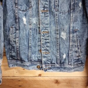 Carbon Distressed Ripped Acid Wash Blue Denim Jean Jacket Women's Unisex