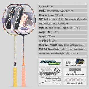 Carbon Fiber Badminton Rackets 2 Pack, Badminton Set Including Badminton Bag