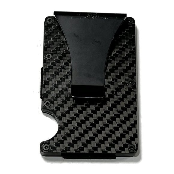 Metal carbon fiber money clip / credit card wallet. The wallet has a few scuffs. Please see pictures for details. Thanks! I ship fast and package securely for safe delivery!