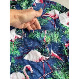 Carbon Flamingo Tropical Graphic Button-Up Shirt Large Short Sleeves Cotton