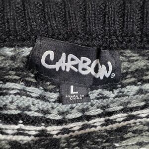 Carbon Men’s Sweater Large Black Gray Knit Pullover Crewneck Patterned Soft Acry
