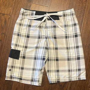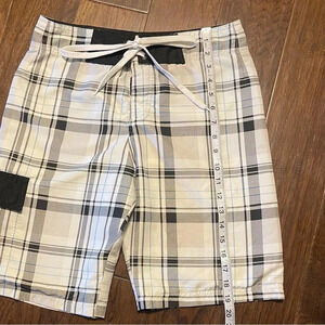 Carbon Plaid Cargo Swim Board Shorts Pockets Y2K