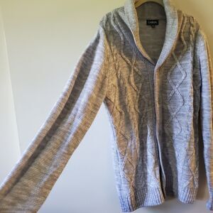Carbon Rue 21 Mens M Gray Cable Knit Cardigan Sweater Grandpa Sweater
