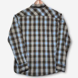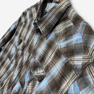 Carbon Shirt Mens XXL Blue Gray Plaid Roll Tab Long Sleeve Reversible Cuffs