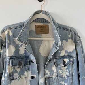 Carbon Woman Medium Distressed Oversized Blue Denim Jean Jacket Destroyed Holes