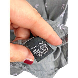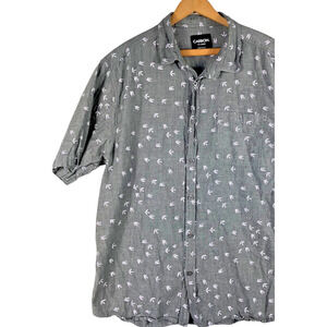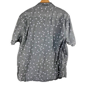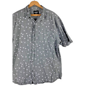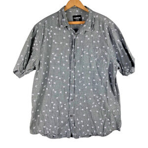 Carbon XXL 2XL Mens Shirt Bird Print Button Down Gray Short Sleeve 100% Cotton