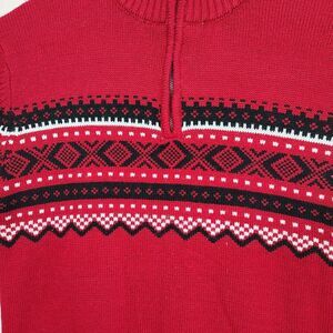 Carbon women's pullover 1/4-zip sweater, size small, red with nordic details