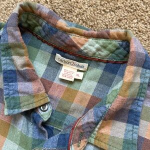 Carbon2Cobalt Cotton Checkered Green/Orange Button Down Long Sleeve Shirt