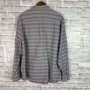 Carbon2Cobalt Gray Striped Double Pocket Long Sleeve Button Up Flannel Shirt XL