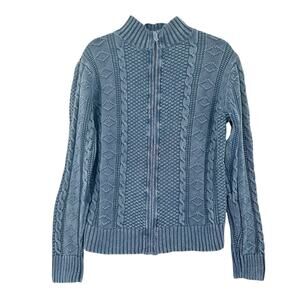 Carbon2Cobalt Mens Linen Cotton Cable Knit Fisherman Full Zip Sweater Size L