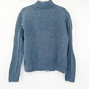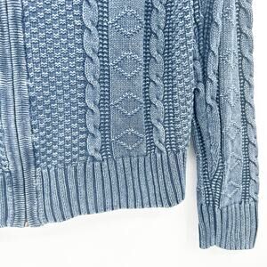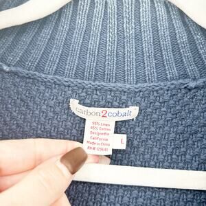 Carbon2Cobalt Mens Linen Cotton Cable Knit Fisherman Full Zip Sweater in Blue. Size large.