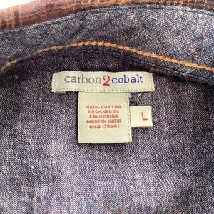 Carbon2Cobalt Men's Spice Box Plaid double-cloth Button-Up Shirt Size L 100% Cot