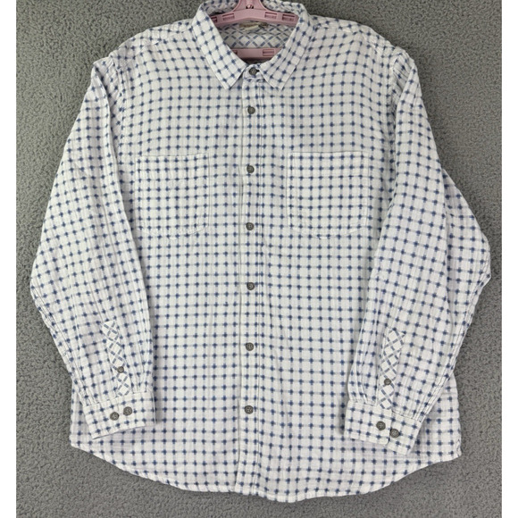 Carbon2Cobalt Mens XL Cotton Grid Shirt White Blue